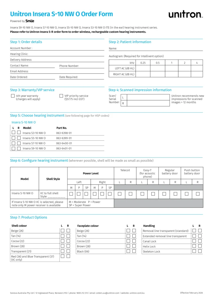 Insera Smile R EarMatch Order Form